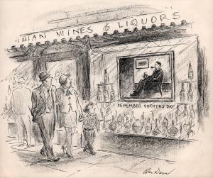 No caption ("Whistler's Father" in liquor store window)