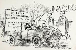 No caption (sign at gas station: "...The Same Superoctane Gas Used By Our B29s...")