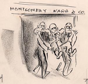 No caption (soldier being carried out of Montgomery Ward & Co. Building)