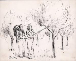 No caption (woman spraying tree)