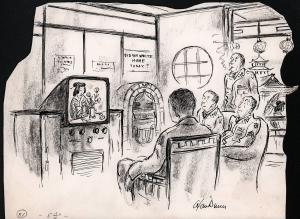 No caption (American soldiers in China watching flower-arranging show on TV)