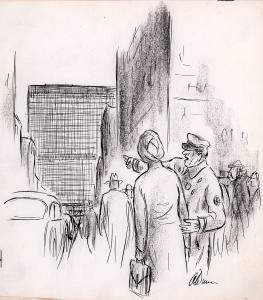 No caption (policeman giving directions to the U.N. to a turbaned Indian)