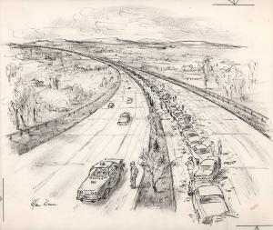 "It's darn near all the way from New York to Buffalo, where some dame suddenly slammed on her brakes."