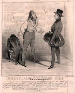 Skip to main content Collections MenuExpandMy CollectionDownload 300 x 300 (Download)View PDFBon ArrangementPreviousNext 300 x 300 (Download)Bon ArrangementArtist Honoré Daumier (French, 1808 - 1879)Date19th centuryClassificationsPrintMediumLithographDimensions11 5/8 x 9 1/4 in.Credit LineGift of Abraham KambergObject number1965.0283 Discover More Les Bons Bourgeois No. 3Honoré Daumierno dateTiens, Adelaide…j’ai voulu te faire une surprise… je t’amene ces turcos pour diner avec nous…quatre homes et…un caporal!...je te previens qu’ils ont bon appetit!Honoré Daumier1859Une leçon de hautes mathématiquesHonoré Daumier1842Assemblee Legislative No. 22Honoré Daumierno dateCaricatura No. 47Honoré Daumierno dateEntrée triomphale d'Oscar et de Théobald / 25 fr. par jour - Le bien vient en dormant!Honoré Daumier1849Actualites No. 159Honoré Daumierno dateCroquuis d'Expression No. 6Honoré Daumierno dateCharmé de se voir exposé, l'original ici présent conduit son épouse au salonHonoré Daumier1842D'AmendeHonoré Daumierno dateCroquis D'Expressions No. 37Honoré Daumierno datePhysionomie de l'Assemblee p. 7Honoré Daumierno date Powered by eMuseum