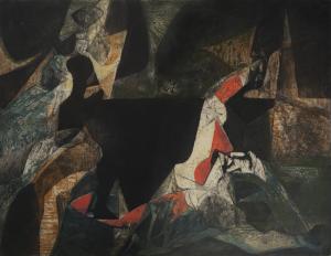 MediumColor soft ground etching, aquatint, and stenciled colors