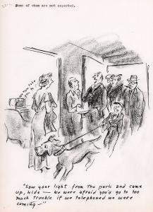 "Saw you light from the park and came up, kids - We were afraid you'd go to too much trouble if we telephoned we were coming -"