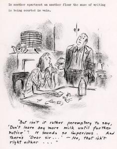 "But isn't it rather peremptory to say, 'Don't leave any more milk until further notice'? It sounds so imperious. And there's 'Dear sir...'-No, that isn't right either..."