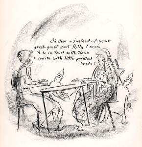 "Oh dear - instead of your great-great aunt Polly I seem to be in touch with three spirits with little pointed heads."