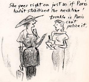 "She goes right on just as if Paris hadn't stabilized the neckline! Trouble is Paris can't police it."