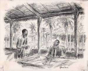 No caption (black man at desk in hut)
