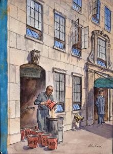 No caption (cover illustration - man emptying sand buckets into garbage can)