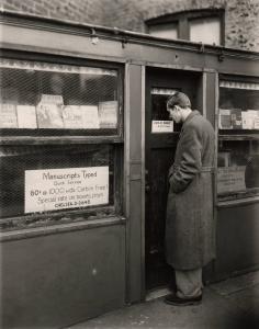 "Manuscripts Typed" in this tiny triangular Bookshop on Seventh Avenue, South.