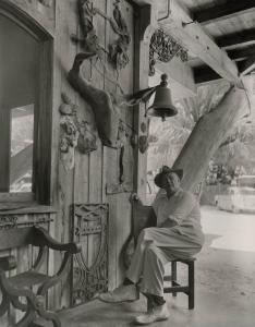 Untitled (Waldo Sexton seated in chair on porch at the Driftwood Inn, Vero Beach, Florida)