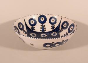 White Glazed Bowl with Blue Design
