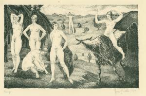 Skip to main content Collections MenuExpandMy CollectionView PDFEuropaPreviousNext 300 x 300 (Download)EuropaArtist George Biddle (American, 1885 - 1973)Date1926ClassificationsPrintMediumlithographDimensionsObject: 7 1/4 × 11 3/4 in. (18.4 × 29.9 cm) Sheet: 10 9/16 × 15 1/2 in. (26.9 × 39.4 cm)Object number1971.130 Discover More Michael JohnGeorge Biddle1938Cat Fish RowGeorge Biddle1936Ezra PoundGeorge Biddle1932EuropaRichard Callner1964untitled [Lady Liberty/ Europa/ Columbia figure extending an olive branch to a small man dressed as a bullfighter]no date Image Not Available for The Appeal to the PeopleThe Appeal to the PeopleGeorge Bellowscirca 1923 - 1924 Image Not Available for Tall GrassesTall GrassesGeorge Lockwood1965Sketch of Frank ByrneGeorge Bellowsc 1923-24SalicornienGeorges Itemno date Image Not Available for Camargue Landscape #2Camargue Landscape #2Georges Itemno date Image Not Available for Bulls and HorsesBulls and HorsesGeorges Item20th centuryThe Irish FairGeorge Bellows1923 Powered by eMuseum