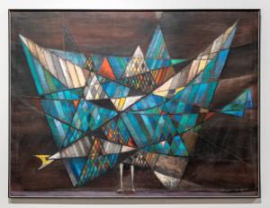 Skip to main content Collections MenuExpandMy CollectionDownload 300 x 300 (Download)View PDFBejeweled BirdPreviousNext 300 x 300 (Download)Bejeweled BirdArtist Richard Koppe (American, 1916 - 1973)Date1951ClassificationsPaintingMediumOilDimensions42 × 56 in.Credit LineGift of the artistObject number1965.0572 Discover More Image Not Available for Bird in TreeBird in TreeRichard Koppe1958 Image Not Available for Bright BirdsBright BirdsRichard Koppe1954 Image Not Available for BirdsBirdsRichard Koppe1950 Image Not Available for Reclining FigureReclining FigureRichard Koppe1953ShapesRichard Koppe1964Sun ShapesRichard Koppe1949 Image Not Available for Untitled AbstractUntitled AbstractRichard Koppen.d. Image Not Available for TerrestrialTerrestrialRichard Koppe1962BluebirdsRichard Koppe1950Summer ColorRichard Koppe1962Silver Space 1948Richard Koppe1948Blue ShriekRichard Koppe1962 Powered by eMuseum