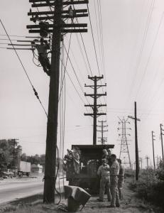 Untitled (roadside crew working on utility pole)