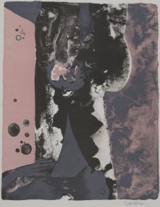 untitled [abstract in pink, lamenting purple figure at right looking up]