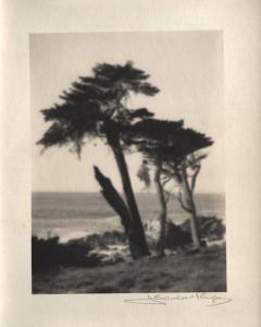 untitled [three cypress trees, ocean/sky view]