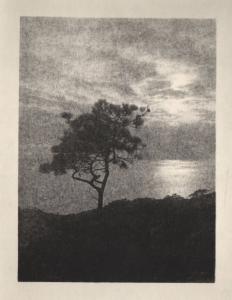 [Solitary torrey pine, ocean/sky view, sunset]