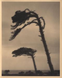 [Cypress tree bending in the wind]
