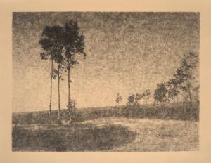 untitled [landscape, three eucalyptus trees, roadside]