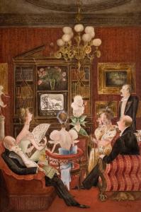 [Mrs. Peabody and guests watching television]