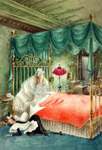 [No caption (Fay plugging in electric blanket)]
