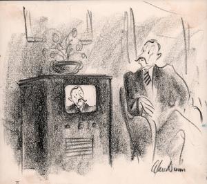 No caption (man seeing himself on television)