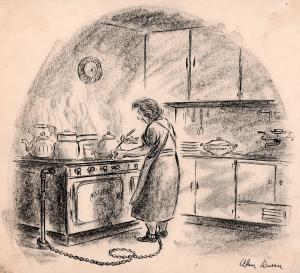 No caption (Woman chained to the stove)