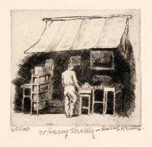 Skip to main content Collections MenuExpandMy CollectionView PDFSecond Hand BookstorePreviousNext 300 x 300 (Download)Second Hand BookstoreArtist Harry Hering (American, 1887 - 1967)Dateno dateClassificationsPrintMediumEtchingDimensions3 5/8 × 4 1/16 in.Credit LineGift of Mr. Harry and Maria WickeyObject number1966.2009 Discover More To MarketHarry Heringno dateSlum AreaHarry Heringno dateMan Looking at a BookHarry Heringno date[Boy at well]Harry Heringno dateMexican VillageHarry Hering1903Back YardHarry Heringno dateRiver SceneHarry Heringno dateBig TreeHarry Heringno datePoster for the bookstore "The Old Man" (from Les Maitres de L'Affiche Vol. II)M. Louise Stowell1897No caption (inflation books on sale at bookstore)Alan Dunn1946No caption (woman making purchase in bookstore)Mary Pettyn.d.Second Hand Store IIClinton Adams1953 Powered by eMuseum