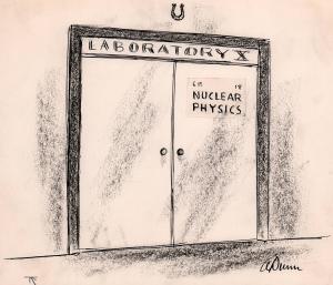 No caption (horseshoe over door to nuclear physics laboratory);