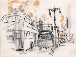 No caption (Man in double-decker bus getting cigarette lit)