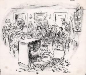 [Television repair men at party]