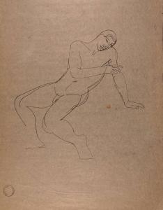 [Nude man with bent knees leaning back on hand]