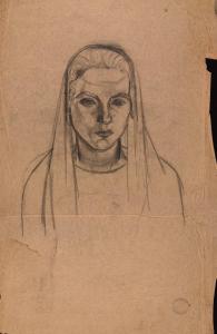 [Portrait bust of woman wearing a veil]