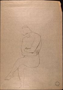 [Seated nude woman with arms and legs crossed and head bowed]