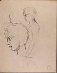 [Figure study of two heads in profile]