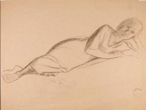 [Figure study of reclining woman]
