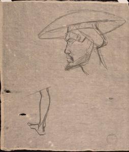 [Figure study of man's head and leg]