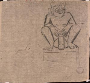 [Squatting nude figure]