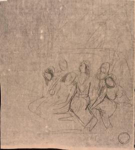 [Figure study of three women attended by servants]