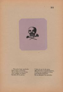 35. Tú serías buen grabador/ Pero toda tu destreza/ No te libró de que fueras/ A la tumba de cabeza./ Sacude allí la pereza/ Y deja de ser lo antes/ Que aburrías a los marchantes,/ T ahora en tu sepulcro labra/ Con buriles elegantes/ En tu obsequio una palabra.