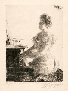 Skip to main content Collections MenuExpandMy CollectionDownload 300 x 300 (Download)View PDFAt the PianoPreviousNext 300 x 300 (Download)At the PianoArtist Anders Zorn (Swedish, 1860 - 1920)Date1900ClassificationsPrintMediumEtching and drypointDimensions7 7/8 x 5 7/8 in.Credit LineGift of Mr. Cloud WamplerObject number1966.2196 Discover More PepitaAnders Zorn1883Madame Simon IIAnders Zorn1891Mrs. Cleveland IIAnders Zorn1899Travelling Companion (Mr. Charles Deering)Anders Zorn1904VallkullaAnders Zorn1912The LetterAnders Zorn1913ShallowAnders Zorn1913ElinAnders Zorn1914Kesti, Paysanne de MoraAnders Zorn1906EdoAnders Zorn1907Mrs. Aurore KlintbergAnders Zorn1909PrecipiceAnders Zorn1909 Powered by eMuseum