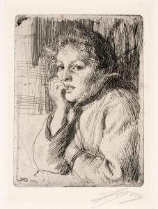 Skip to main content Collections MenuExpandMy CollectionDownload 300 x 300 (Download)View PDFKesti, Paysanne de MoraPreviousNext 300 x 300 (Download)Kesti, Paysanne de MoraArtist Anders Zorn (Swedish, 1860 - 1920)Date1906ClassificationsPrintMediumEtching and drypointDimensions6 1/4 x 4 3/4 in.Credit LineGift of Mr. Cloud WamplerObject number1966.2207 Discover More PepitaAnders Zorn1883Madame Simon IIAnders Zorn1891Mrs. Cleveland IIAnders Zorn1899Travelling Companion (Mr. Charles Deering)Anders Zorn1904At the PianoAnders Zorn1900VallkullaAnders Zorn1912The LetterAnders Zorn1913ShallowAnders Zorn1913ElinAnders Zorn1914EdoAnders Zorn1907Mrs. Aurore KlintbergAnders Zorn1909PrecipiceAnders Zorn1909 Powered by eMuseum