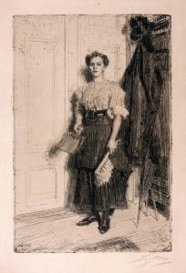 Skip to main content Collections MenuExpandMy CollectionDownload 300 x 300 (Download)View PDFThe New MaidPreviousNext 300 x 300 (Download)The New MaidArtist Anders Zorn (Swedish, 1860 - 1920)Date1909ClassificationsPrintMediumEtchingDimensions11 3/4 x 7 3/4 in.Credit LineGift of Mr. Cloud WamplerObject number1966.2216 Discover More PepitaAnders Zorn1883Mary (repose)Anders Zorn1884Self Portrait (a painter-etcher)Anders Zorn1889Rosita MauriAnders Zorn1889Head of an Old ManAnders Zorn1890Fisherman at St. IvesAnders Zorn1891The WaltzAnders Zorn1891Le Matin (Morning)Anders Zorn1891Girl with a Cigarette IIAnders Zorn1891Le ReveilAnders Zorn1891Madame Simon IIAnders Zorn1891Ernest RenanAnders Zorn1892 Powered by eMuseum