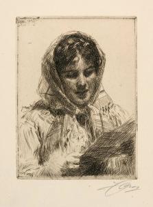 Skip to main content Collections MenuExpandMy CollectionDownload 300 x 300 (Download)View PDFThe LetterPreviousNext 300 x 300 (Download)The LetterArtist Anders Zorn (Swedish, 1860 - 1920)Date1913ClassificationsPrintMediumEtching and drypointDimensions6 3/8 x 4 3/4 in.Credit LineGift of Mr. Cloud WamplerObject number1966.2226 Discover More PepitaAnders Zorn1883Madame Simon IIAnders Zorn1891Mrs. Cleveland IIAnders Zorn1899Travelling Companion (Mr. Charles Deering)Anders Zorn1904At the PianoAnders Zorn1900VallkullaAnders Zorn1912ShallowAnders Zorn1913ElinAnders Zorn1914Kesti, Paysanne de MoraAnders Zorn1906EdoAnders Zorn1907Mrs. Aurore KlintbergAnders Zorn1909PrecipiceAnders Zorn1909 Powered by eMuseum