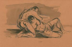 Skip to main content Collections MenuExpandMy CollectionDownload 300 x 300 (Download)View PDFTwo Men WrestlingPreviousNext 300 x 300 (Download)Two Men WrestlingArtist Harry Herman Wickey (American, 1892 - 1968)Date1924ClassificationsDrawingMediumInk, wash, and pencilDimensions8 1/4 x 11 1/8 in.Credit LineGift of Mr. Harry and Maria WickeyObject number1966.2324 Discover More Image Not Available for [Wrestlers wrestling][Wrestlers wrestling]Harry Herman Wickey1926 Image Not Available for Wrestling No. 5Wrestling No. 5Harry Herman Wickeycirca 1926You Can Look Like This, Self-PortraitHarry Herman Wickey1924 Image Not Available for Football Players No. 1Football Players No. 1Harry Herman Wickey1925 Image Not Available for [Hogs fighting][Hogs fighting]Harry Herman Wickey1933 Image Not Available for Old FriendOld FriendHarry Herman Wickey1940 Image Not Available for Christmas PartyChristmas PartyHarry Herman Wickey1943 Image Not Available for [Study for Tackling][Study for Tackling]Harry Herman Wickeycirca 1950 Image Not Available for DogsDogsHarry Herman Wickey1924 Image Not Available for [Seated man reading][Seated man reading]Harry Herman Wickeyno date Image Not Available for [Two women near fire plug][Two women near fire plug]Harry Herman Wickey1932 Image Not Available for [Two girls conversing][Two girls conversing]Harry Herman Wickey1957 Powered by eMuseum