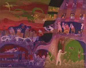 MediumSoft ground etching and aquatint with à la poupée inking and relief rolls through stencils