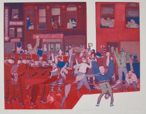 MediumColor soft-ground etching, drypoint, and aquatint, with vibrograver, and relief rolls through stencils